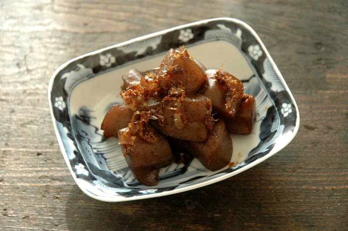 こんにゃくの甘辛煮 煮物のレシピ 作り方:白ごはん.com。