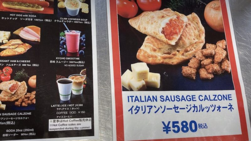 ✳️ コストコフードコート新商品 カルツォーネ CALZONE 580円 正式には来週かららしい。 だから看板にはまだなくて、レジ前ポップだけ今日はお試しか練習 180円のホットドッグを買うつもりで 580円になったという 。 ソーセージとチーズと玉ねぎがこれでもかって位に。