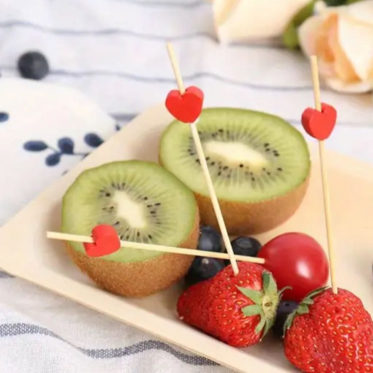 100個 ラブハート竹製カクテ* - 11.99cm アペタイザー、フルーツ、寿司&*用装飾串 - 結婚式、パーティー&シャルキュトリーボードに最適。