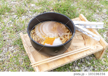 キャンプで作ったチャーシューメンの写真素材103196356- PIXTA。