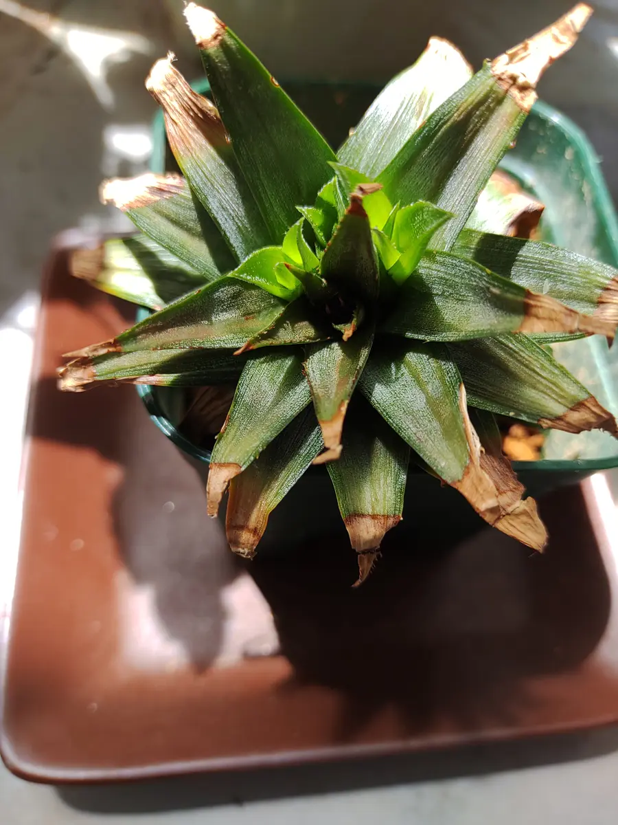 パイナップルを土に植えたら枯れてきました。いつも水栽培で失敗す- Yahoo!知恵袋。