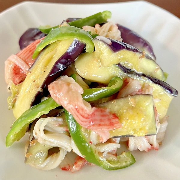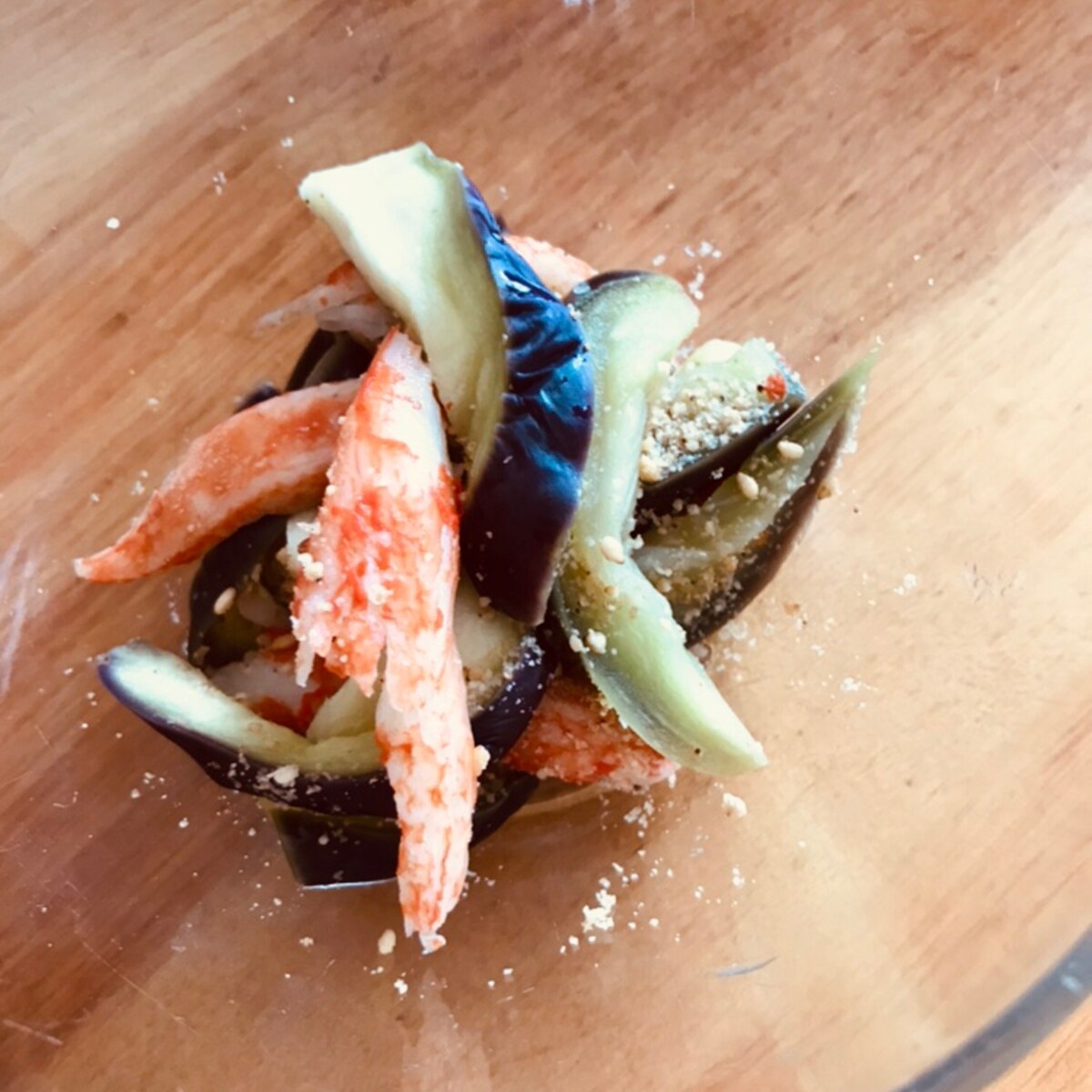 なすとカニカマの冷製♡ポン酢びたし作り置き レンジ。