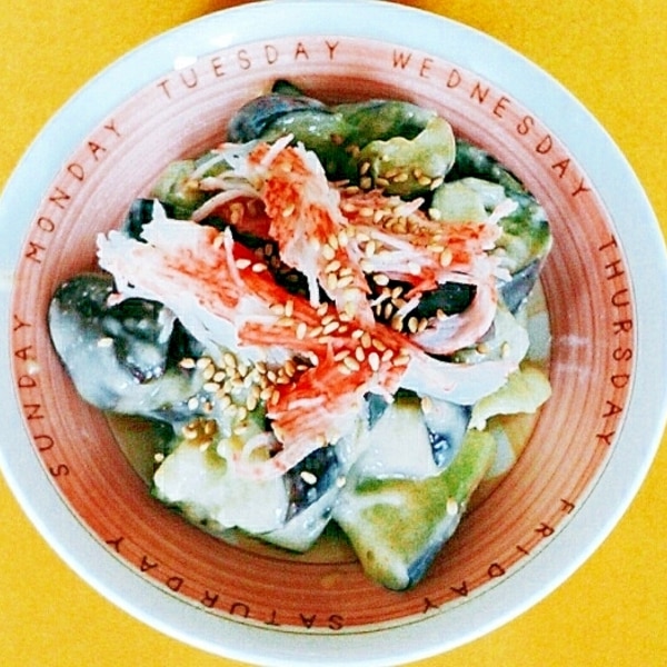 レンチンで和えるだけ! ナスとカニカマのわさびマヨサラダ☆食欲アップに♪。