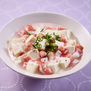 カニカマとねぎのスープかけごはんの献立 副菜:塩もみなす の中華サラダ、副菜:熱々じゃこサララかけ豆腐 献立・メニュー 味の素パーク たべる楽しさを、もっと。