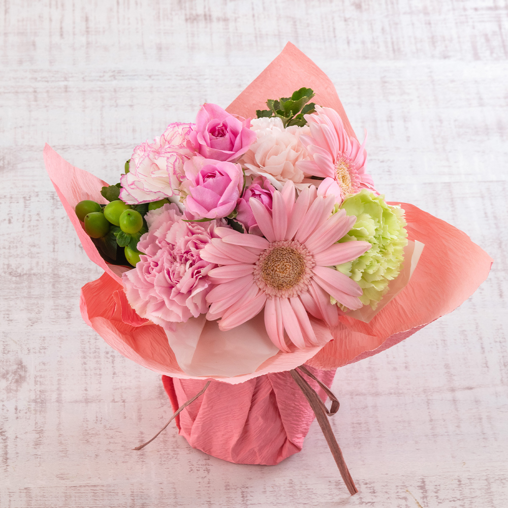005 ちょっとしたプレゼントに♪ ミニブーケ ピンク お花 花 生花 花束 ブーケ フラワーアレンジメント ミニブーケ お祝い 誕生日 結婚祝い出産祝い ホワイトデー バレンタイン 父の日 母の日 敬老の日 記念日 結婚記念日 送別 退職 入学 卒業 開店祝い 周年祝い。