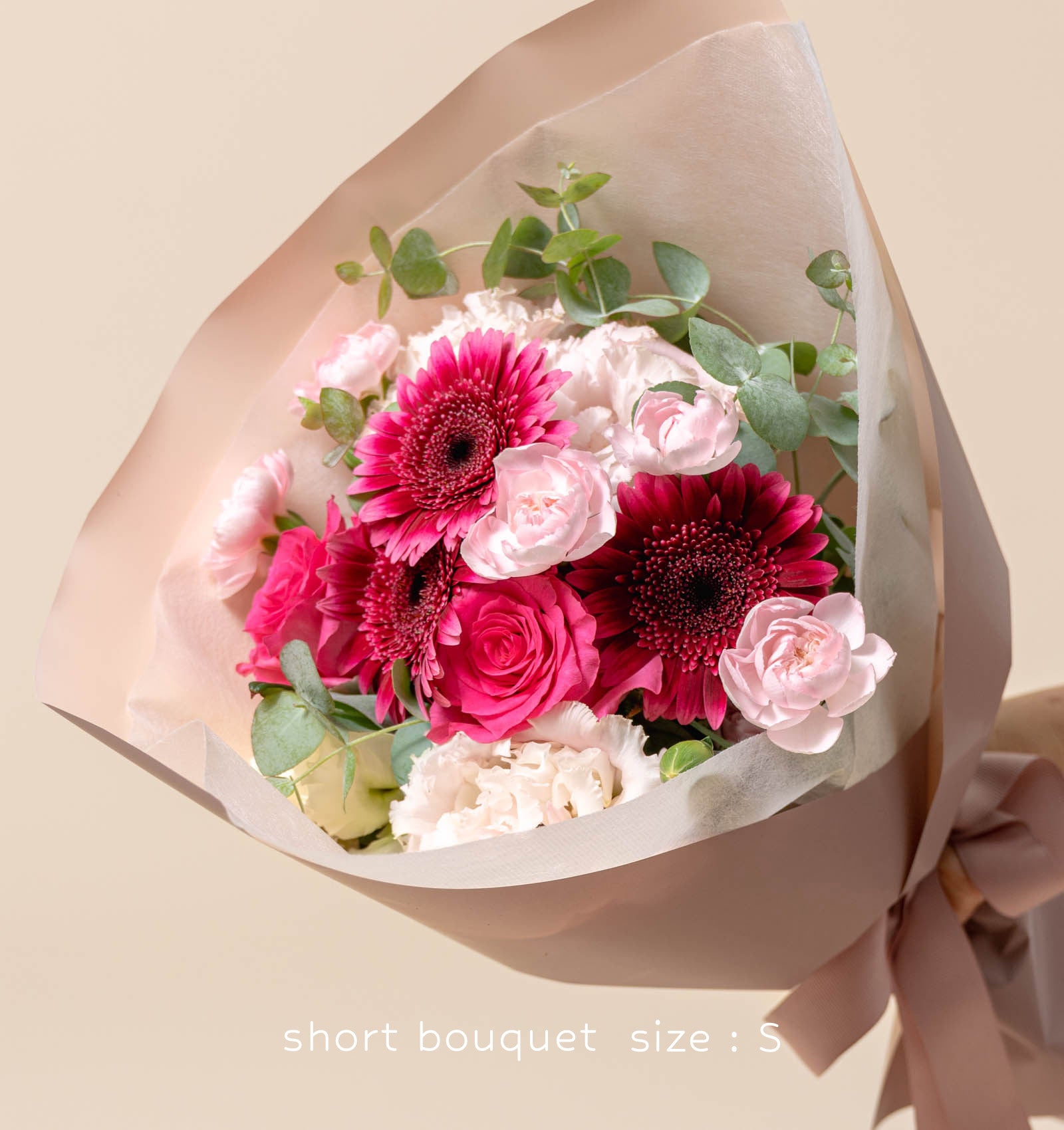 花束アレンジ size:S 濃いピンク花次郎のフラワーギフトプレゼント花束ブーケ 生花おしゃれおすすめ安い誕生日結婚祝い母の日敬老の日お花の贈り物。