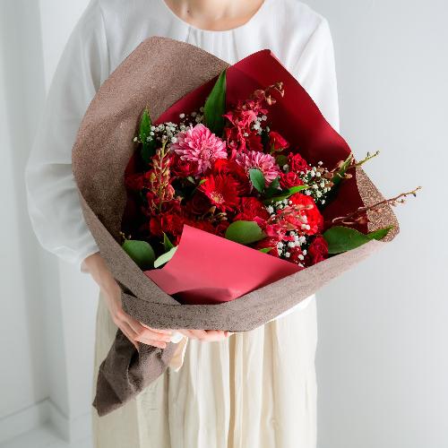 お祝い花 プロにおまかせ ブーケ「赤系」3,850円」フラワーギフトはプロのお花屋さんにおまかせ!フジテレビフラワーネット。
