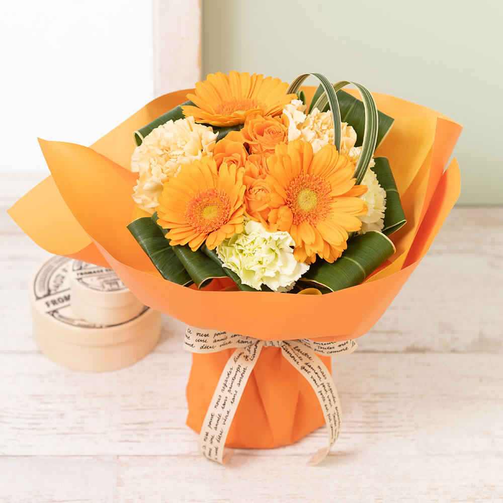WEB限定そのまま飾れる花束スタンドブーケ「フレッシュオレンジ」 – hanna。