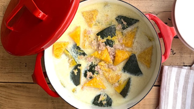 冷凍かぼちゃ×ツナ缶の簡単レシピ!時短でできるミルクスープカゴメ株式会社。