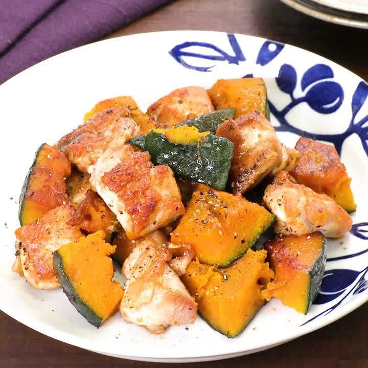 冷凍かぼちゃで♪ かぼちゃと鶏肉のバターしょうゆ炒め。