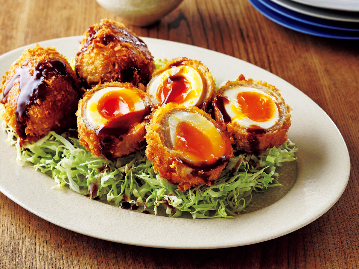 A deliciously crispy Scotch egg on the outside and soft, half-cookedinside! - YouTube。