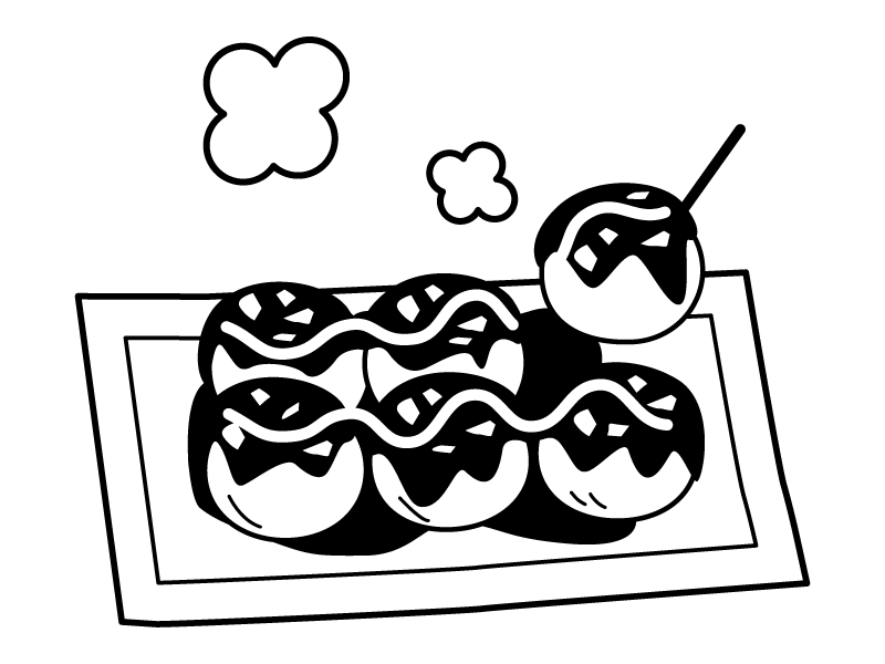 ホクホクのたこ焼きの白黒イラストかわいい無料の白黒イラスト モノぽっと。