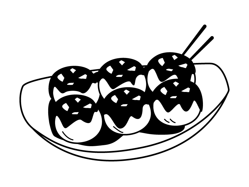 たこ焼きの白黒イラスト02かわいい無料の白黒イラスト モノぽっと。