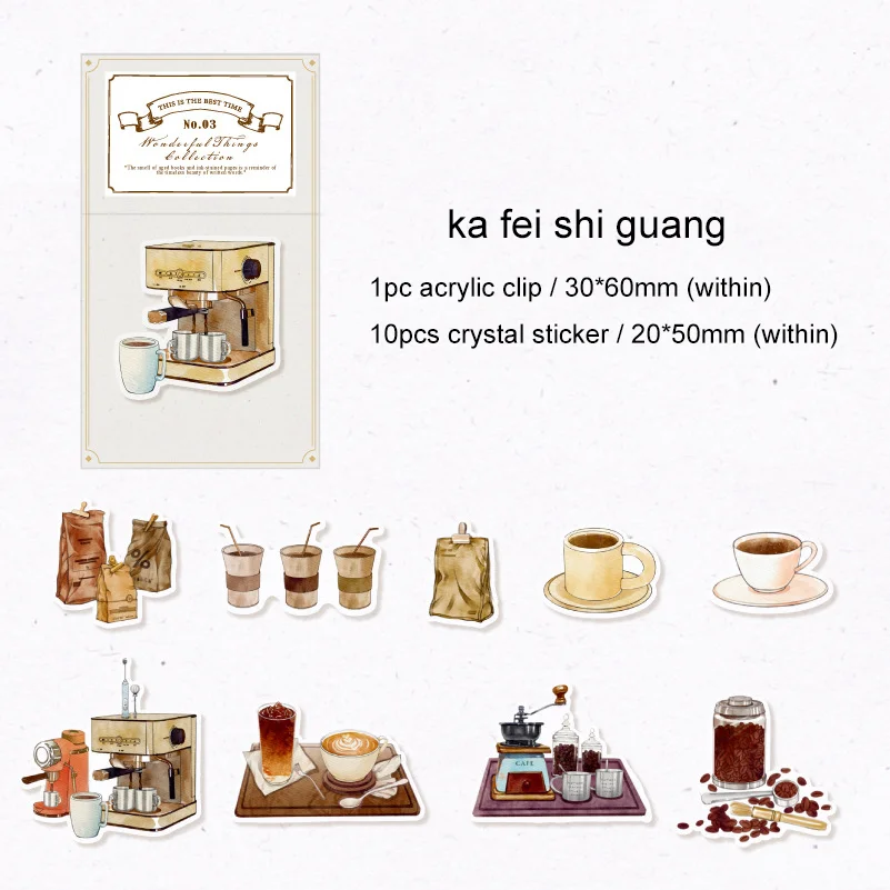アクリルハンドクリップ - グッドタイムシリーズ ヴィンテージコーヒー風景画。