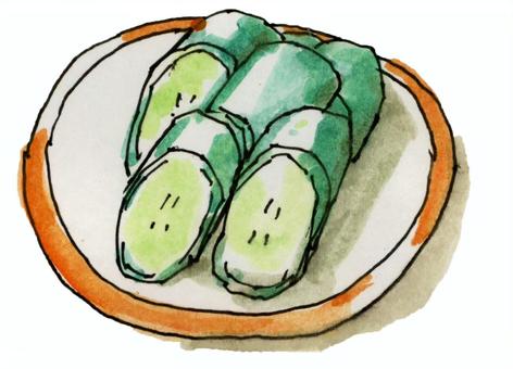 小皿に盛られた、胡瓜のぬか漬けの無料イラストイラストセンタ。