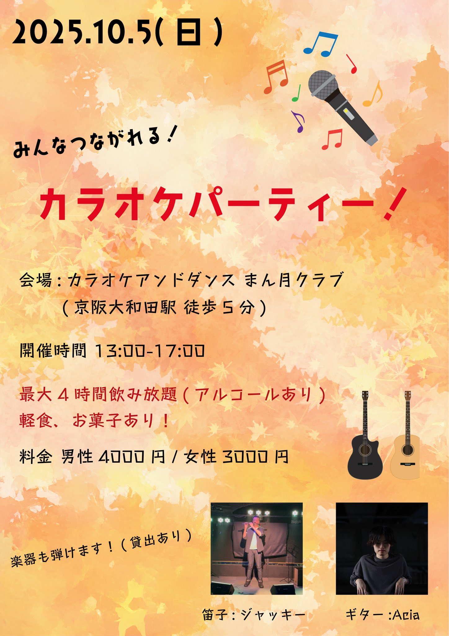 Acia アシア on X: " イベント開催情報🎤2025.10.5 日『みんなつながれる!カラオケパーティー!』 会場:カラオケ&ダンスまん月クラブ 開催時間:13:00~17:00 💴料金:男性¥4000 女性¥3000 🍹最大4時間飲み放題! アルコール含む軽食•お菓子もあり🍪ご予約はDMまで。