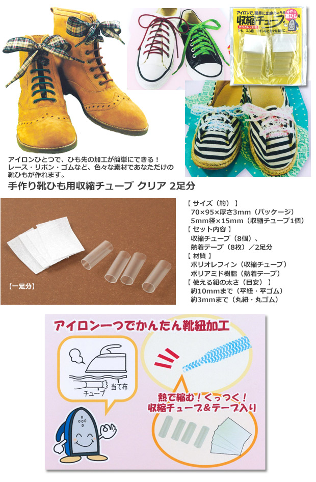 手作り靴ひも用 収縮チューブ クリア 2足分アイロンで簡単 靴ひもアレンジグッズ 靴紐 手作り 材料 熱収縮チューブ手芸材料の通信販売 シュゲール。