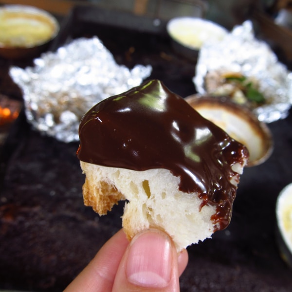 BBQでチョコレートフォンデュ♪アルミ皿でお手軽。