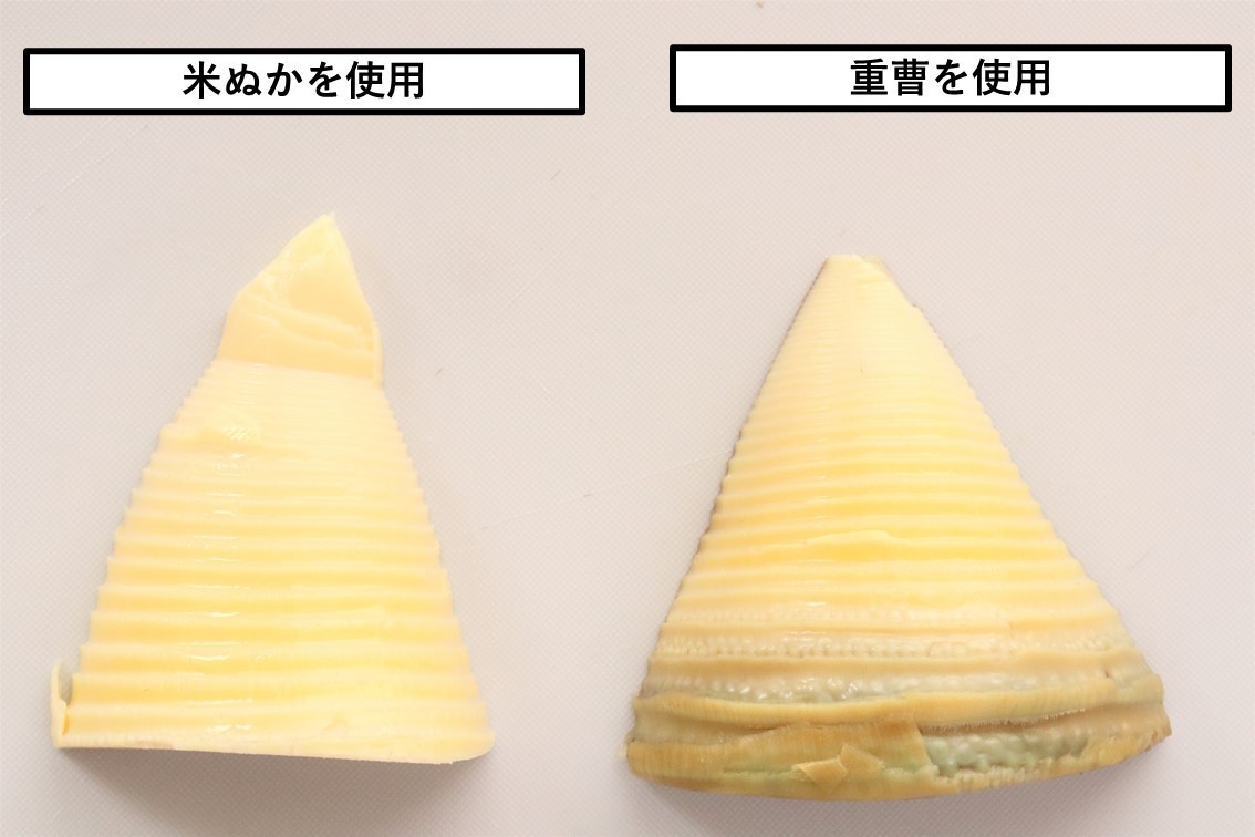 たけのこのアク抜き 水だけ・米ぬか・重曹でのアクの残り具合を比較 - IKASHIYA CULINARY ART。