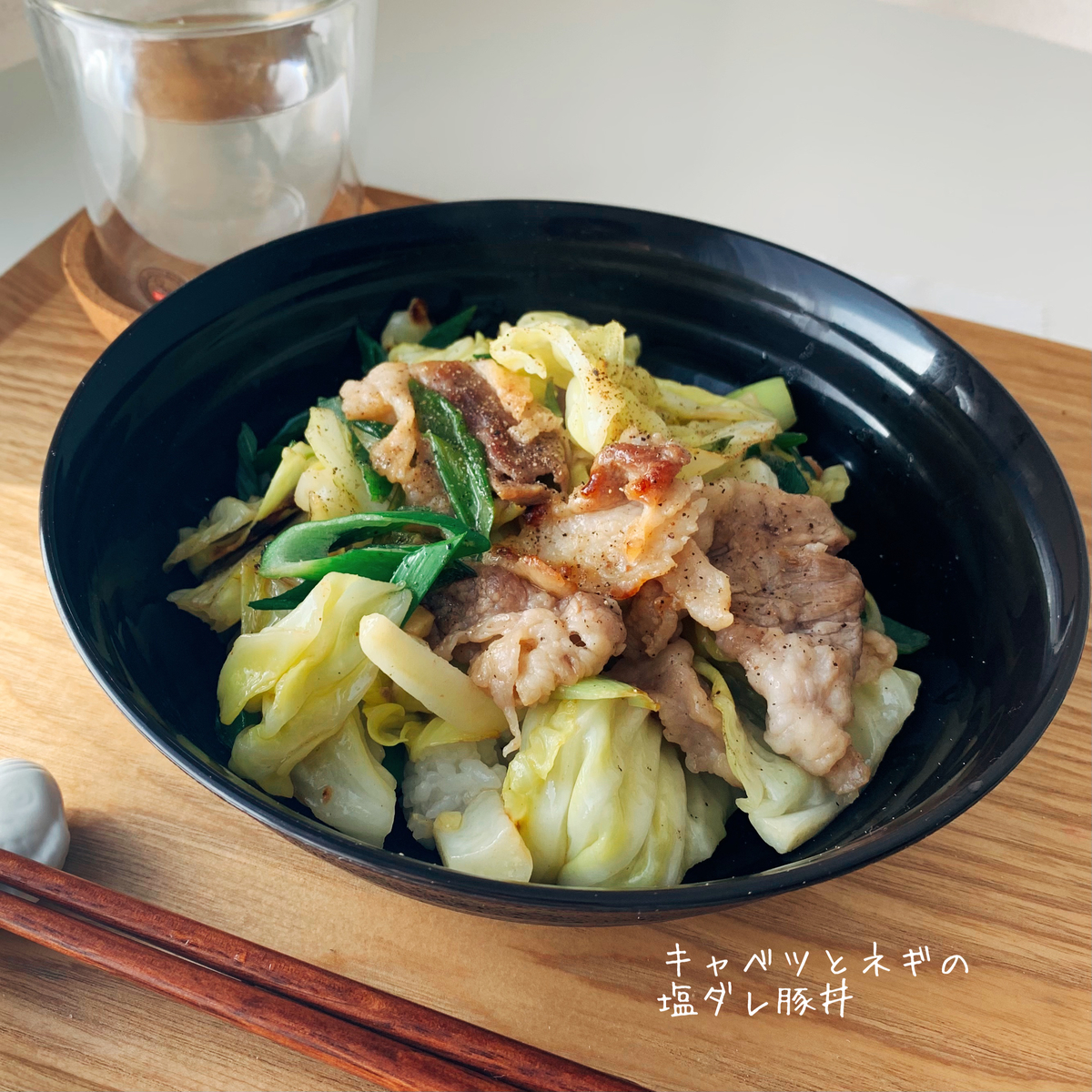 料理記録 休日昼ごはん〜キャベツとネギの塩だれ豚丼〜 - *nanoblo*一人暮らし料理記録。