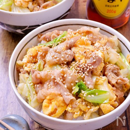 焼キャベツたっぷり。おうちでボリューム満点豚丼レシピ。