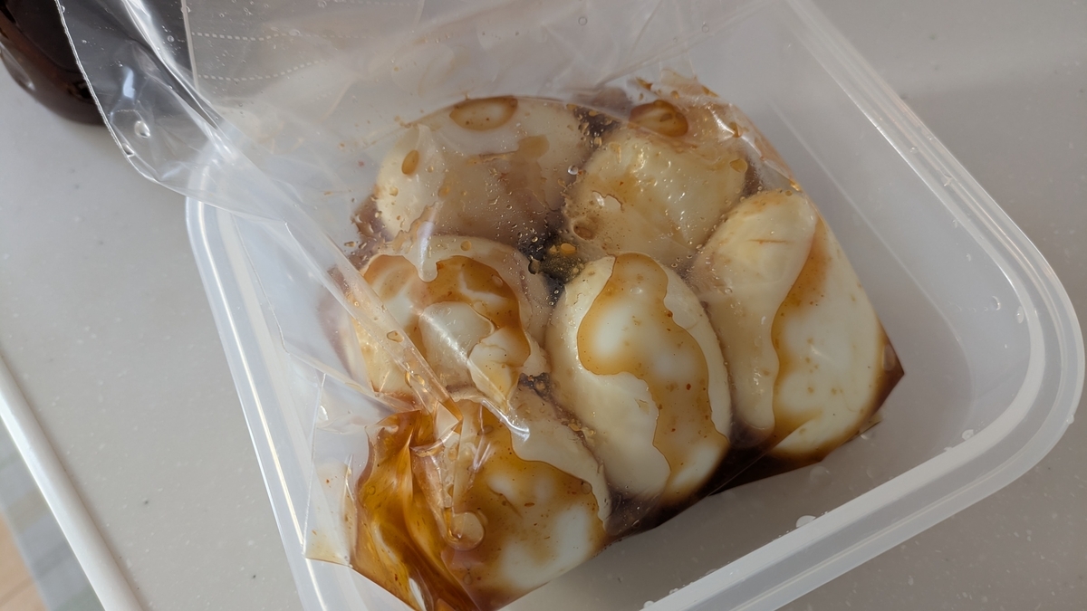 第6位 焼肉のたれで『やみつき味玉』 ①焼き肉のたれ 適量 に殻をむいたゆで卵を漬ける ②冷蔵庫で約 2 時間冷やしたら完成! ☆100円ショップで買える「味付け卵メーカー」を使うと少量のたれで漬け込むことができます!家事ヤロウドンキホーテドンキ上川隆也。