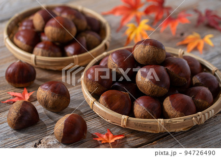 栗、甘栗、木の実、実、茶色、食べ物、ナッツ、剥き栗、お皿、白いお皿、剥いた栗 の Stock フォトAdobe Stock。