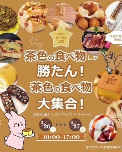 茶色の食べ物しか勝たん‼️茶色の食べ物大集合😍』 3月26.27日の2日間‼️ 『岸和田ベイサイドモールカンカン』で開催させて頂きます♬株式会社TOT岸和田の地域 お祭りのイベント参加者募集・無料掲載の掲示板ジモティ。