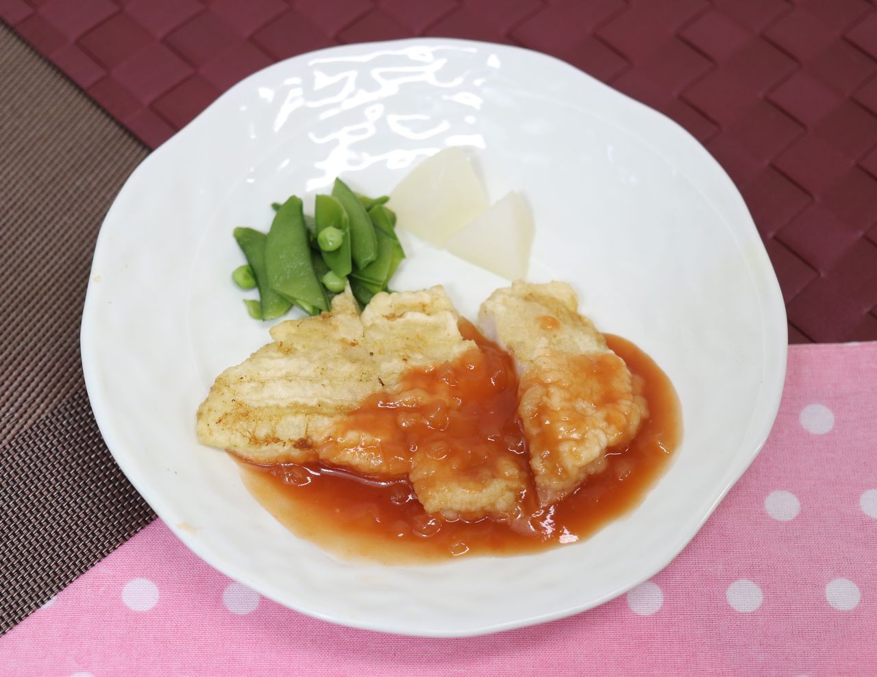 魚のチリソース学校給食レシピ株式会社SN食品研究所。