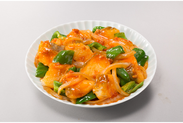 白身魚のチリソース給食管理栄養士・栄養士ならエイチエ。