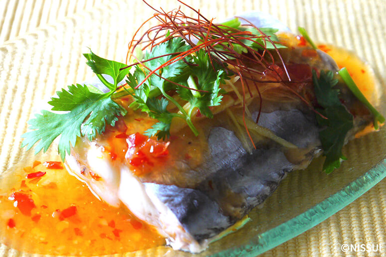 白身魚のムニエル バジル&スイートチリソース風味タイフードを使ったアレンジレシピタイフードヤマモリ。
