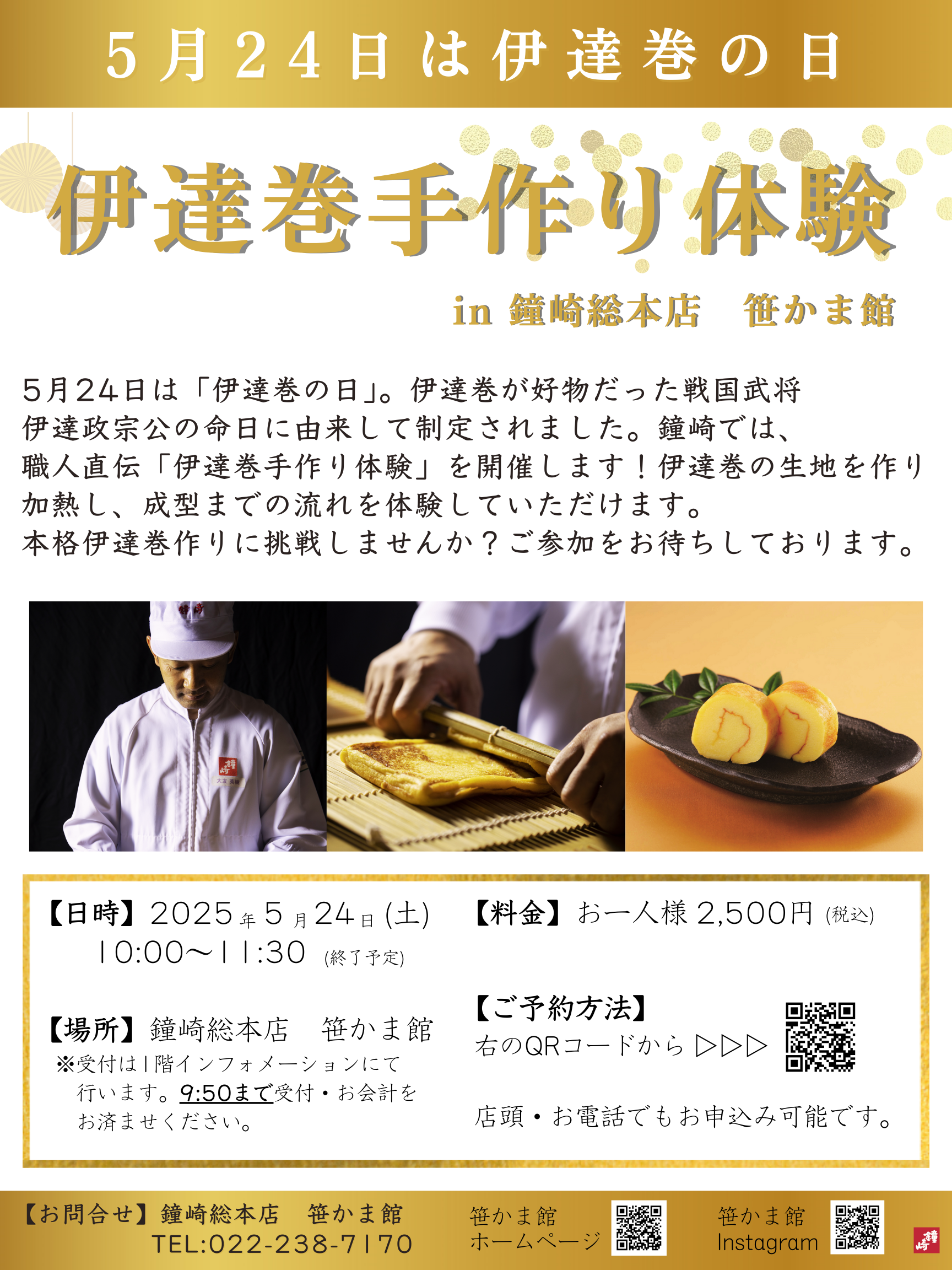 9月7日 土 ・9月8日 日笹かまぼこ 手作り体験 お休みのお知らせ - お知らせ- 松島蒲鉾本舗。