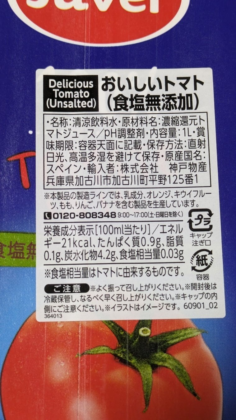 週に1回業務スーパーバンザイ on X: "富永食品 完熟トマトジュース 税抜38円 オススメ度激安神戸居留地シリーズです。サラッとしていてトロミは少なく、濃厚さはありません。また、塩分がかなり効いていてしょっぱさを感じました。トマトジュースなら他のブランドを買う。