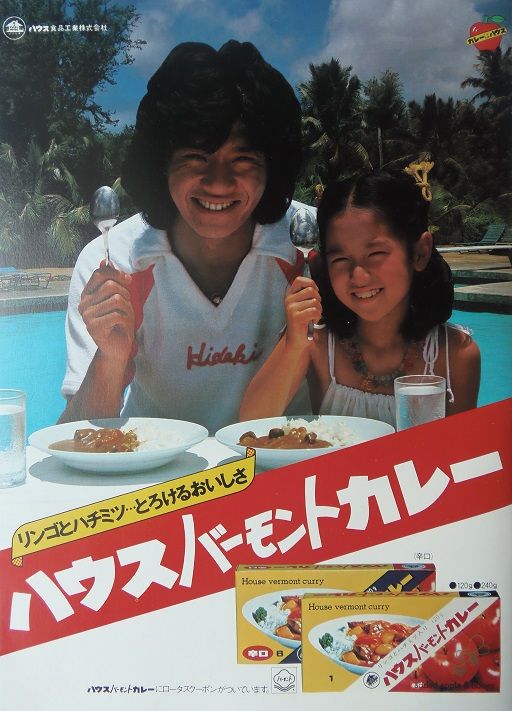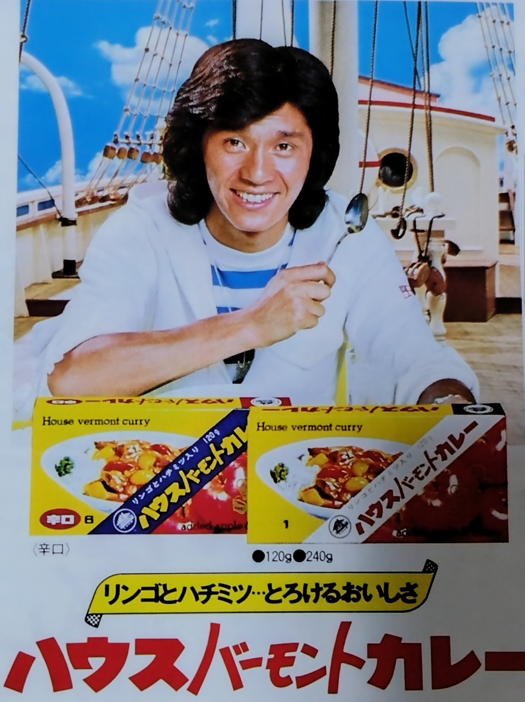 西城秀樹 ハウスバーモントカレー 広告看板 昭和レトロ ヴィンテージ風。