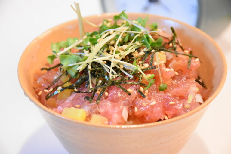 こんばんは! お魚の定食の紹介です! 「とろろと、ネギトロたくあんのとろたく丼」¥1,380 +taxマグロのたたきに刻みたくさんを加えたとろたく丼です! 下にとろろもあり、まちがいないやつです笑 暑い夏でもさっぱりペロリと食べられちゃいますよ♪韓国のりもそえて。