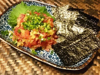 Nちゃん on X: "ネギトロと刻んだたくわん、納豆、塩、ごま油、にんにくチューブ混ぜて海苔で巻いて食べるの旨すぎる。ネギトロの1番美味い食べ方更新した。https:t.co IEQPU5F9MR"X。