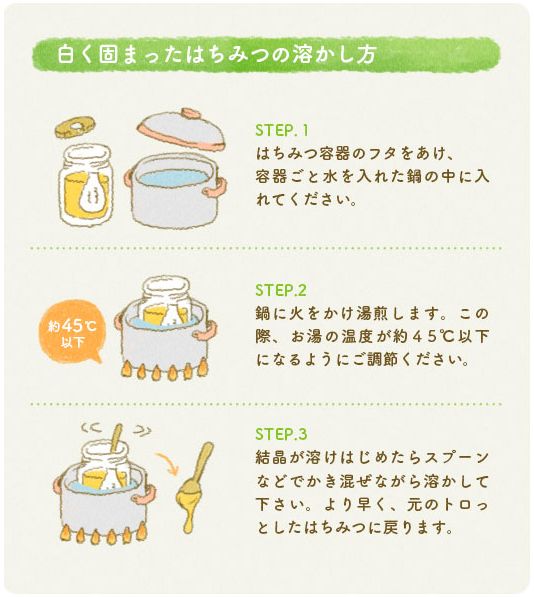 はちみつが固まった時の溶かし方いろいろ山本養蜂場。
