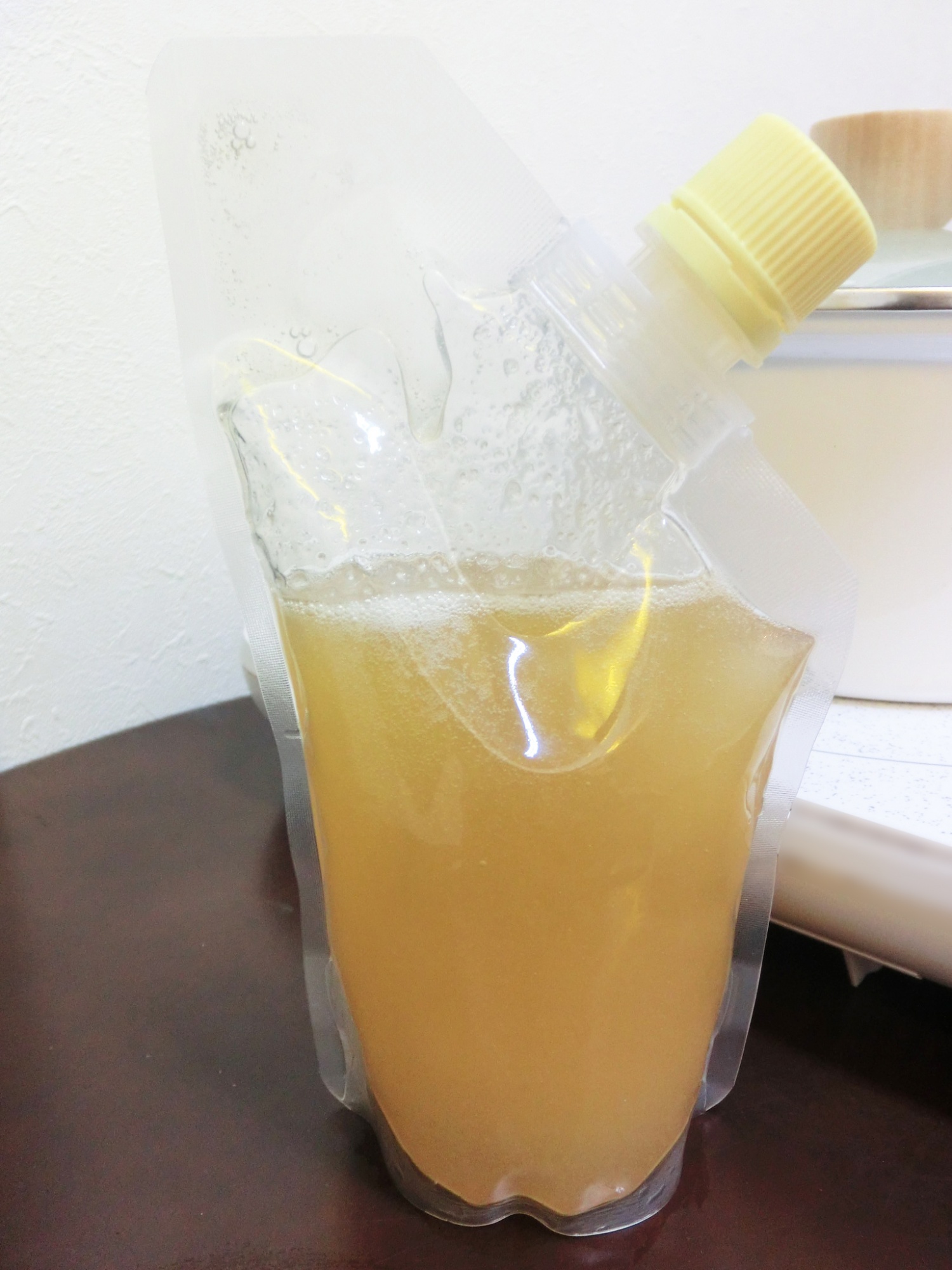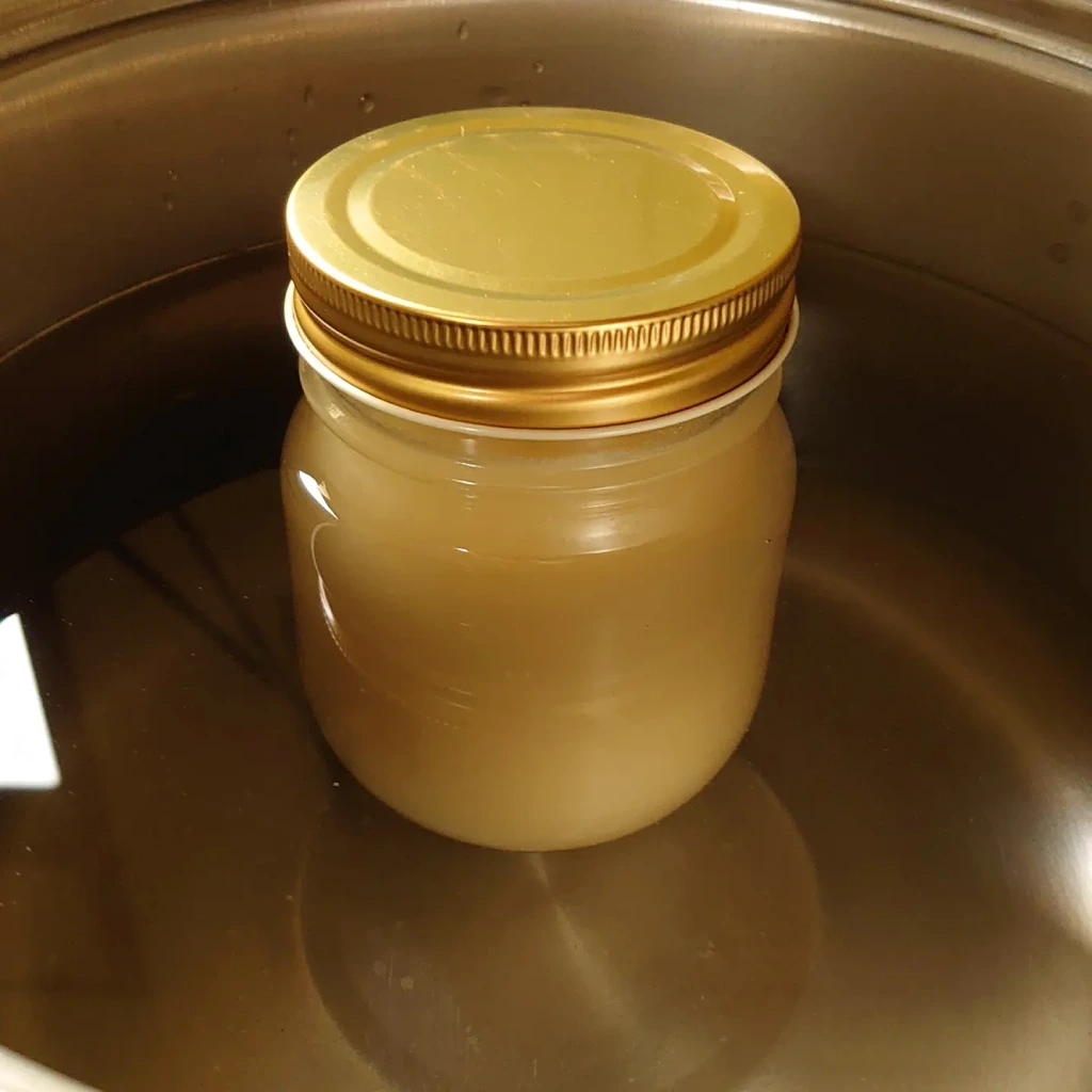 固まったハチミツの溶かし方お湯につけるだけで簡単に溶けました。