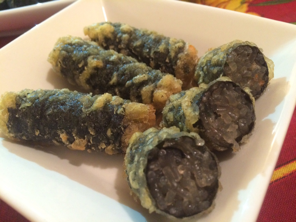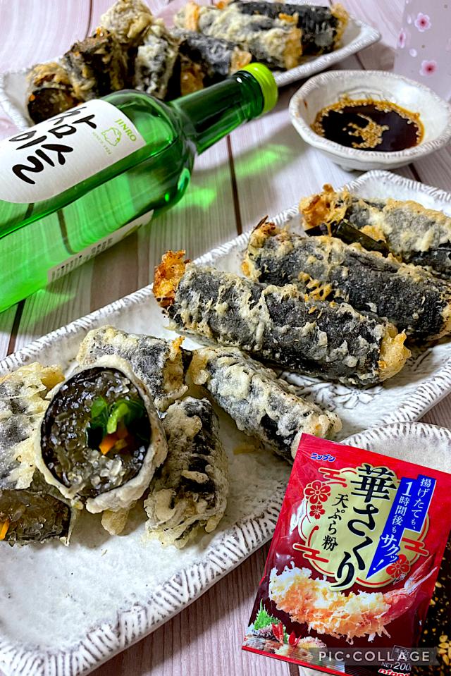 レンチンで時短!韓国の屋台料理 春雨の海苔巻き天ぷら。
