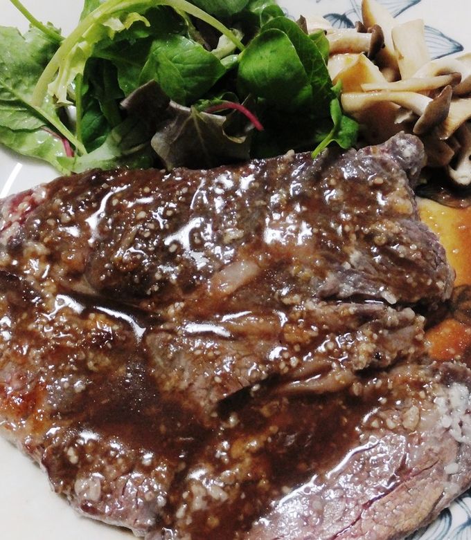 固いお肉でも柔らかく♪ 漬け込みやわらかステーキ。