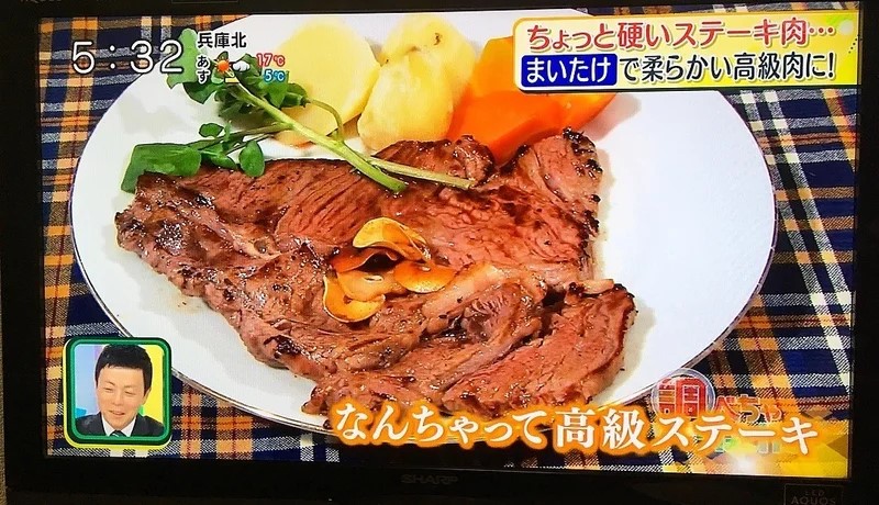 舞茸でやわらかステーキ硬いお肉がやわらかくなるレシピ。
