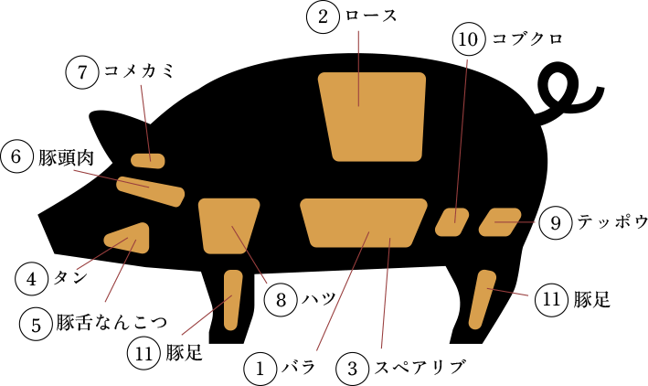 豚の部位別 基礎知識- カルビ屋ワッショイ 藤沢市 辻堂・湘南台創業45年地域密着のお手頃国産牛焼肉店。