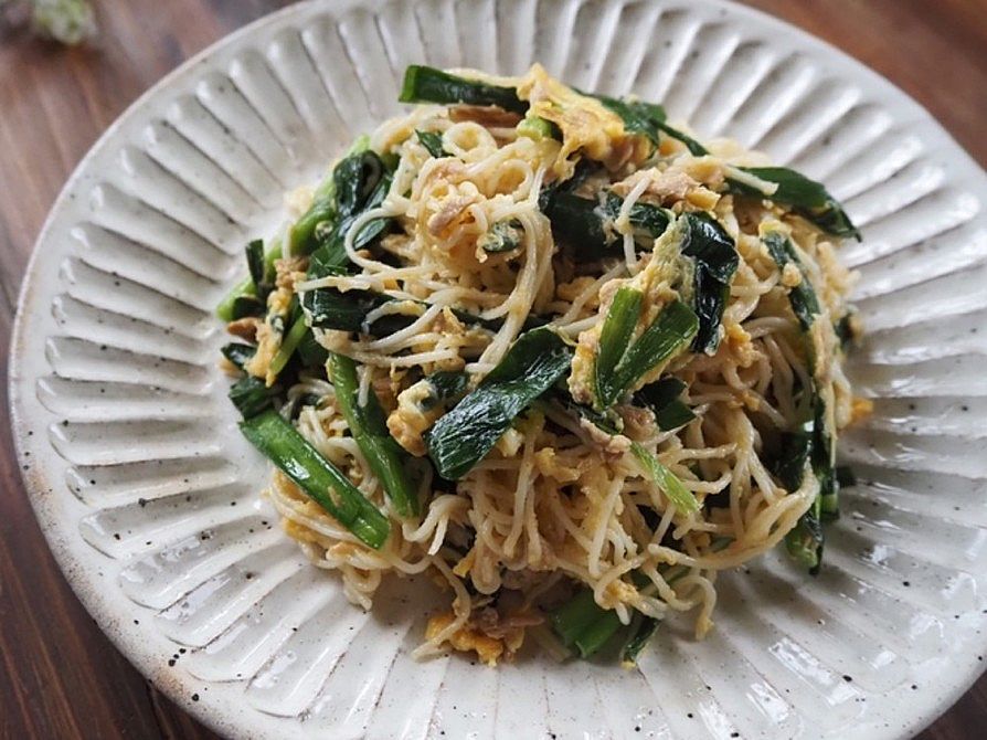 そうめんアレンジレシピ! ニラ玉そうめんチャンプル。
