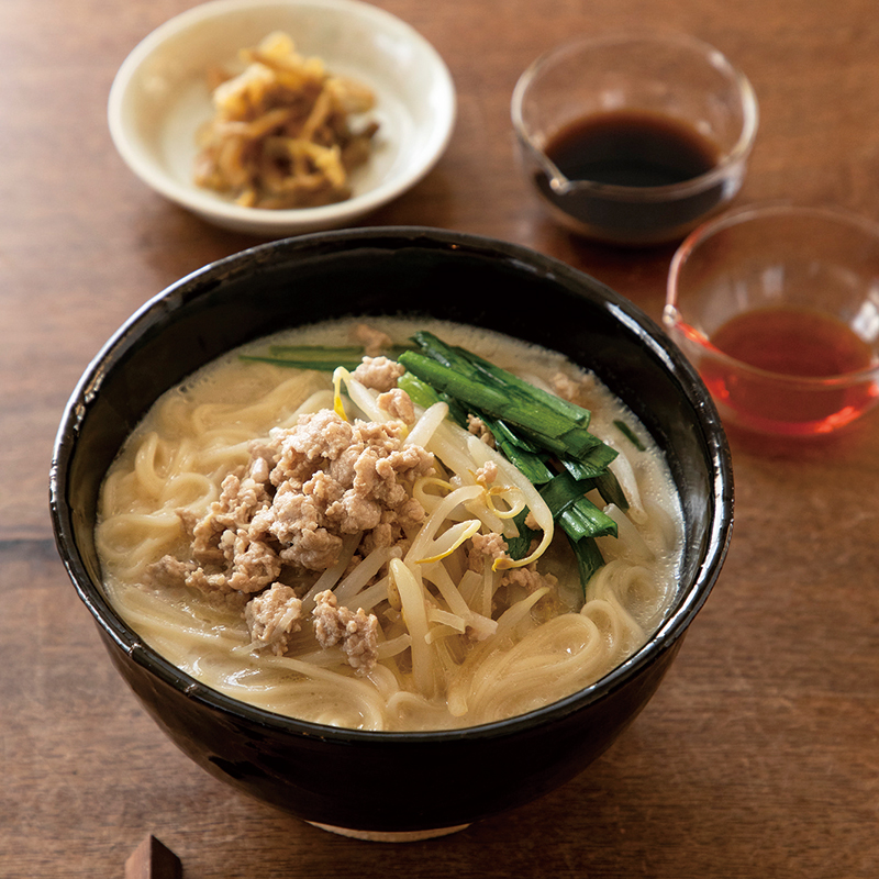 衝撃の味!鶏ひき肉とニラの塩そば風冷やしそうめん 料理人のレシピ。