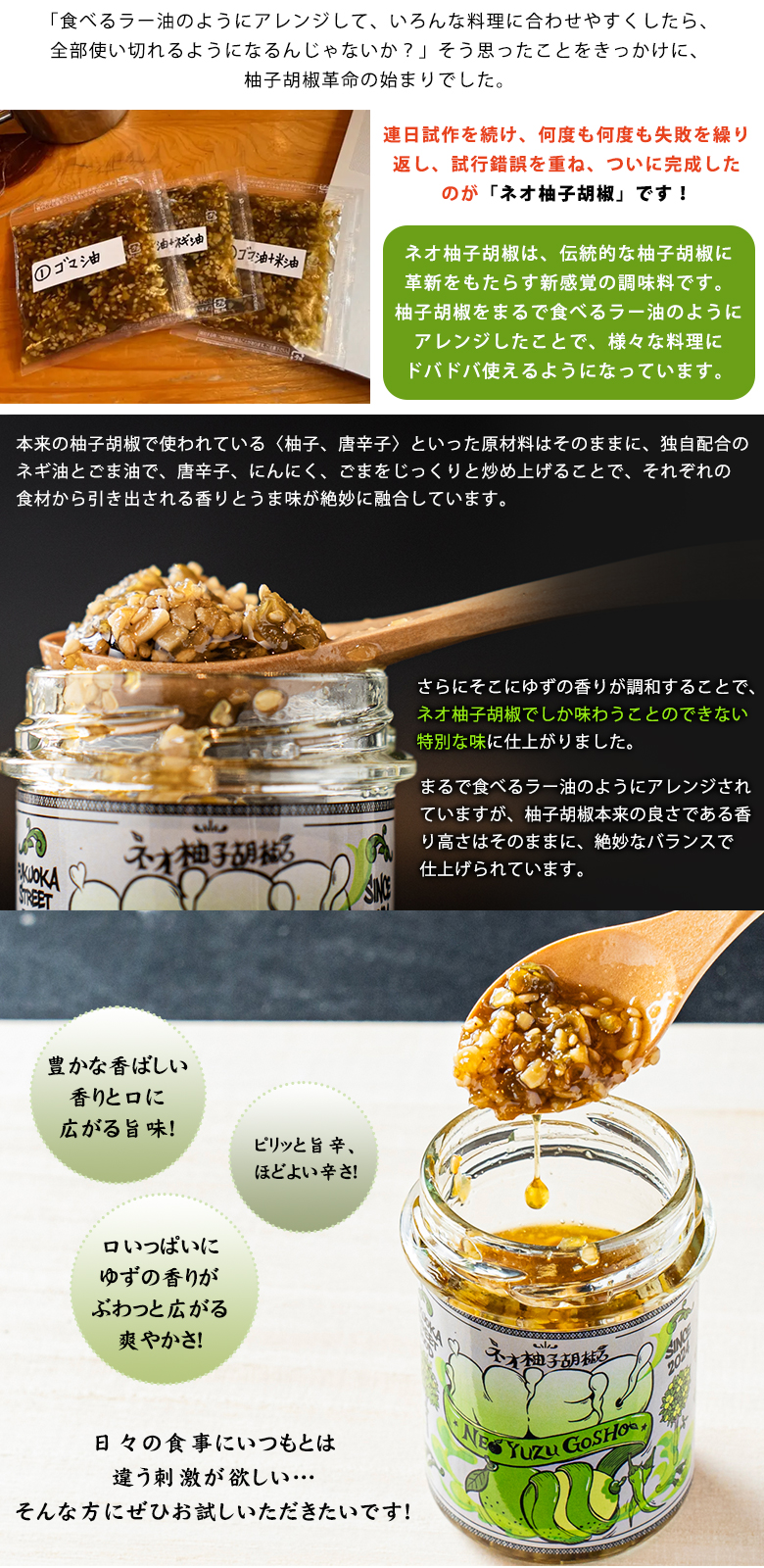 ネオ柚子胡椒 3個セット 食べられる柚子胡椒 独自レシピ オリジナル柚子胡椒 ゆずこしょう ゆず胡椒 底見え調味料 万能調味料 美味しい 料理 調理隠し味 国産。