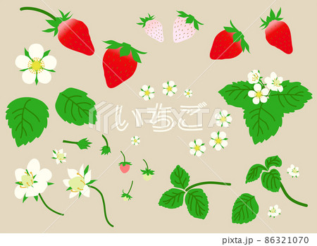 いちご 花 葉っぱ セット のイラスト素材86321070- PIXTA。