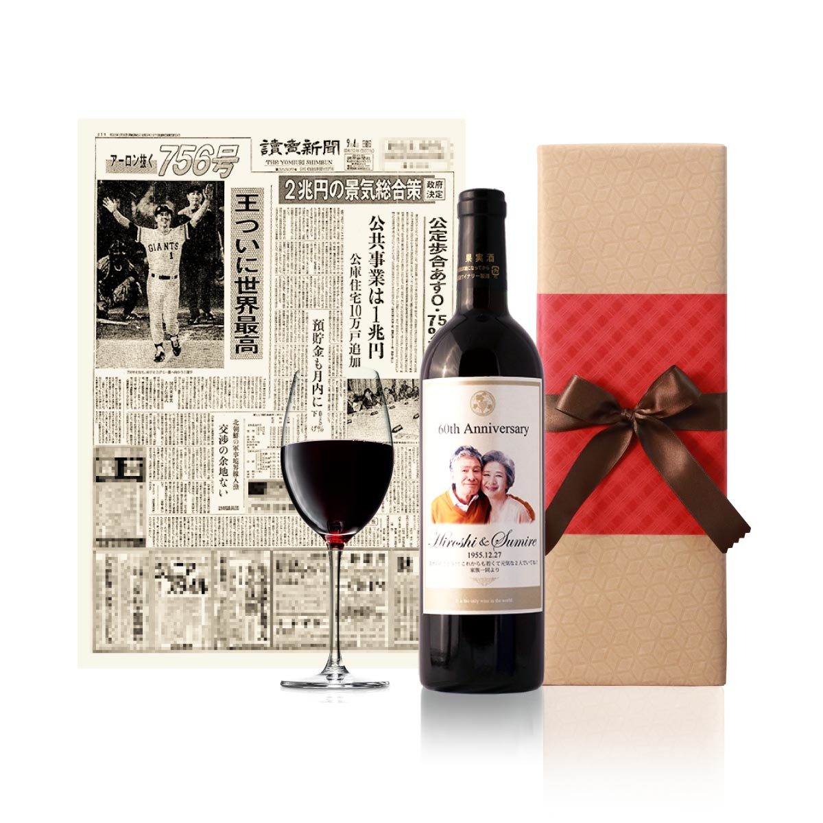 漢字のラベルがかっこいい!メモリアル新聞付きオリジナル漢字ワイン≪粋≫ 赤 白ワイン750ml八百萬屋のプレゼント・ギフト通販TANP タンプ。