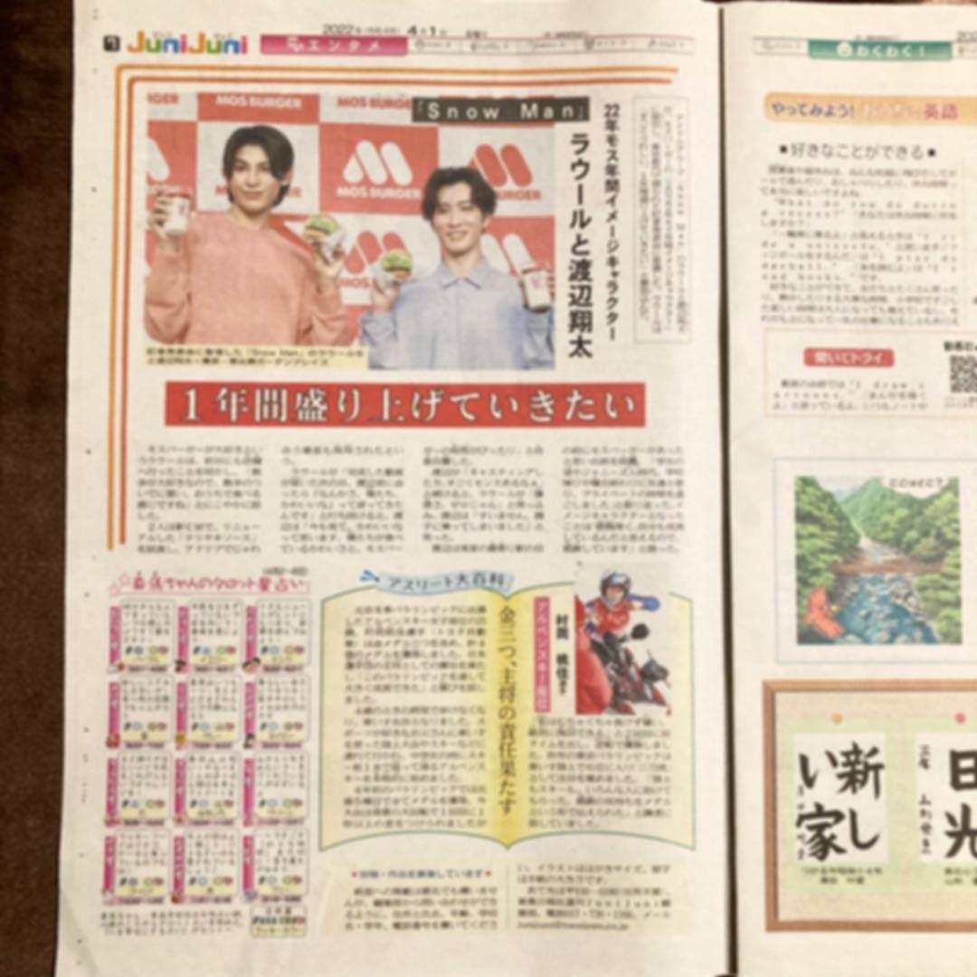 東奥日報 ラウール 渡辺翔太 SnowManモスバーガー 青森 地方紙 新聞記事 - メルカリ。