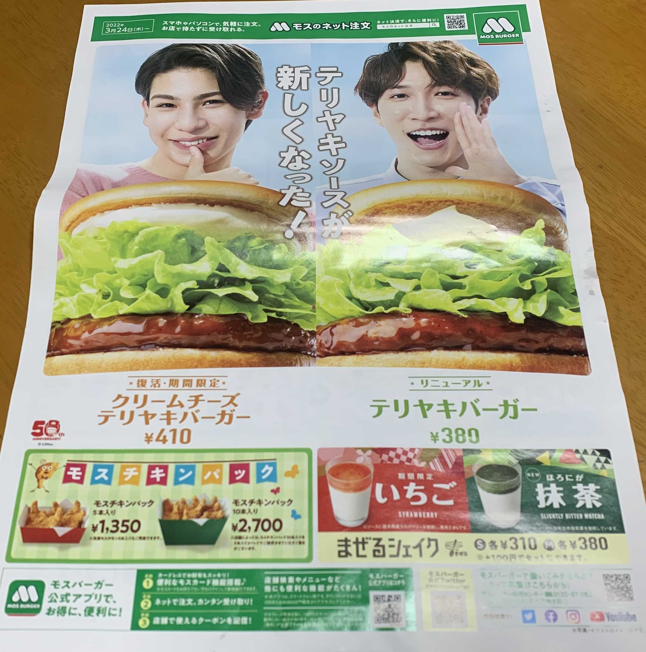 Snow Man 渡辺翔太💙ラウール🤍新聞折込広告 4月2日 テリヤキソースが新しくなった!モスバーガーSnow Man日記 - 楽天ブログ。