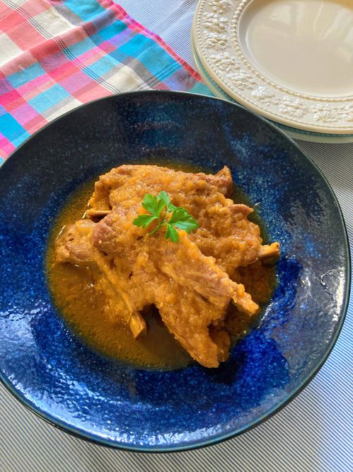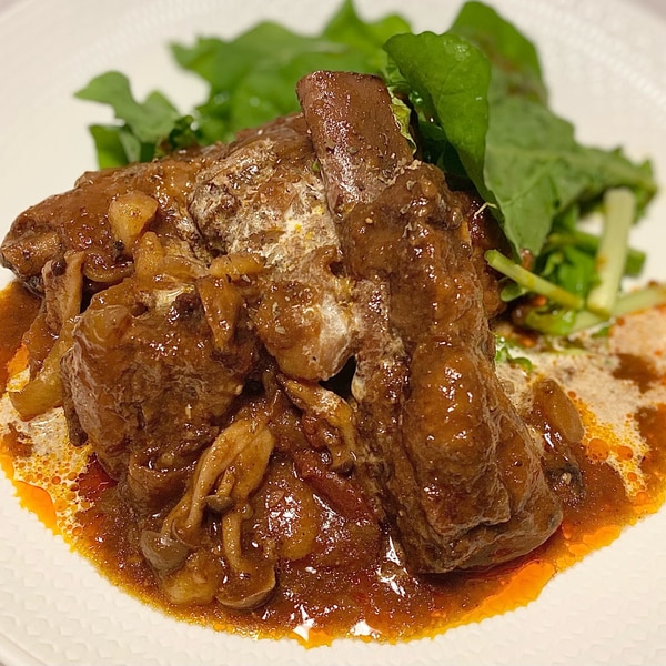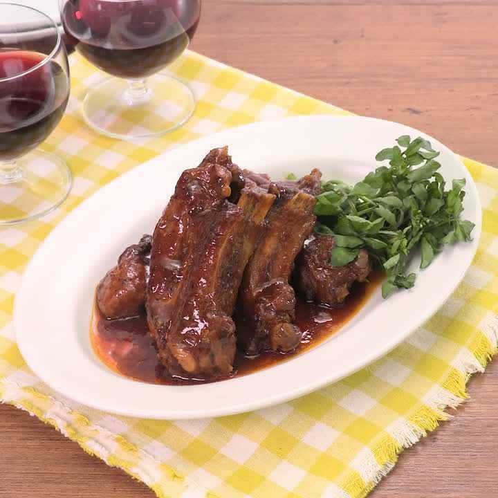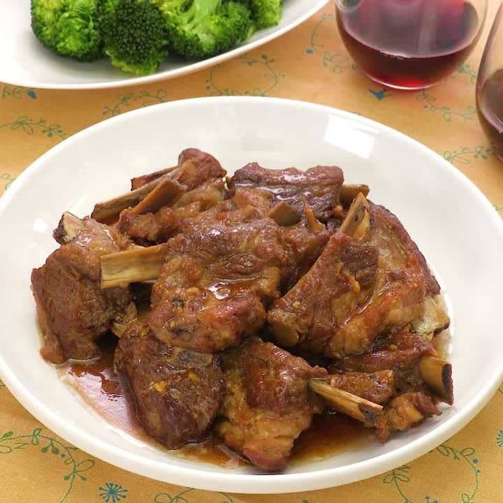 圧力鍋で簡単!ほろほろスペアリブの赤ワイン煮込み。